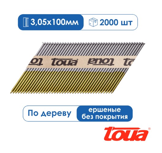 Реечные гвозди для нейлера ершеные без покрытия Toua D34 100 мм